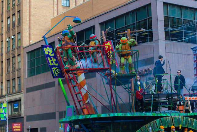 На близлежащих улицах - торговля полным ходом. В Америке на всем умеют делать деньги. Что там сегодня? Парад мультяшных героев? А мы вот вам шапки навязали тематические - редкий ребенок пройдет мимо